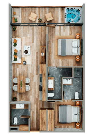 2 bdrm + 2.5 bth | Double terrace + jacuzzi.